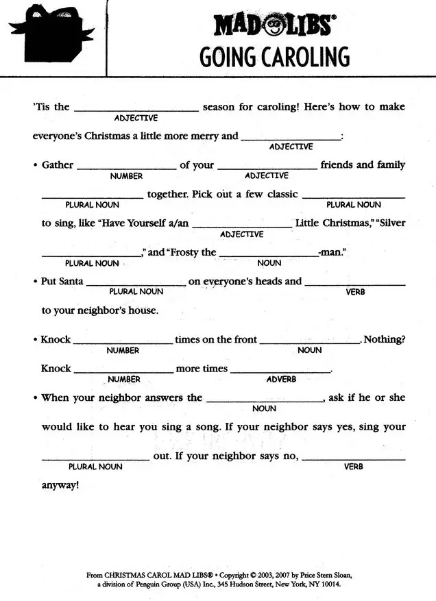 Kids love mad libs because they are always so fun and funny. Teachers love them because they are a great way to practice parts of speech in a way that kids actually enjoy. Nurture your child's curiosity in math, english, science, and social studies. Target.com has been visited by 1m+ users in the past month From summer writing and journal prompts to trivia, we have you covered. Nurture your child's curiosity in math, english, science, and social studies. Our full collection of summer worksheets will provide even more ways to exercise kids' minds. Get game mad libs today with drive up, pick up or same day delivery. Action figures, building sets, character shop, dolls Summer is my family's most favorite time of year, and this summer will be jam packed with swimming lessons, a vacation, and plenty of boating on the river! Here, students are asked to choose their own descriptive words to complete a story that follows a certain theme (think "mad libs" for first graders). Apr 13, 2018 · 20. Jun 22, 2018 · we've rounded up 14 wedding mad libs for you to incorporate into your big day.